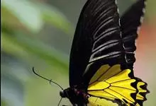 金裳凤蝶是凤蝶科、裳凤蝶属的动物。金裳凤蝶身体呈黑色,头、颈和胸侧有红毛,腹部有黑黄两色相间条纹,雄蝶前翅黑色,具黑天鹅绒光泽,各脉两侧灰白色,后翅金黄色,各室外缘有等腰三角形黑斑1枚,斑内侧有晕,…全部>>