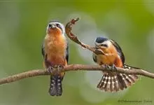 红腿小隼是隼形目隼科小隼属鸟类。红腿小隼前额白色,眼上有一宽阔的白色眉纹,往后经耳覆羽与上背白色领圈相连颊和耳覆羽白色,从眼前开始有一粗的黑色贯眼纹经眼斜向下到耳;其余上体包括翅和尾黑色,…全部>>