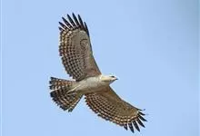 鹰雕,是隼形目鹰科鹰雕属大型猛禽,俗称熊鹰、赫氏角鹰。其上体暗褐色,头后冠羽常竖立起,腰和尾上覆羽有淡色横斑,尾灰色带数道黑褐色横纹,下体淡黄白色带淡褐色横斑,喉部具黑褐色中央纹,胸部有黑褐色纵纹,…全部>>
