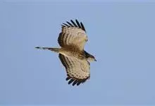 普通鵟:是鹰科、鵟属鸟类,属中型猛禽。体长54厘米,翼展122-137厘米,体重515-810克。体色变化较大,上体主要为暗褐色,下体主要为暗褐色或淡褐色,具深棕色横斑或纵纹,尾淡灰褐色,…全部>>