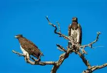 猛雕又名战雕、军雕。赞比亚国鸟。是一种原产于撒哈拉以南非洲的大型雕。是非洲最大的雕。鹰科下靴足雕亚科的一种,它的跗骨上有羽毛。它们也是猛雕属中唯一的成员。作为最大最强健的靴足雕之一,…全部>>