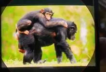 黑猩猩是灵长目人科黑猩猩属哺乳动物。身体臃肿,手臂较长,双腿较短,没有尾巴,身体表面大多覆盖着黑色长毛,但脸、双耳、手指、脚趾裸露无毛:面部呈灰褐色,眉脊很高,眼睛大且眼窝深凹,头部两旁的耳朵大而突出。…全部>>