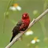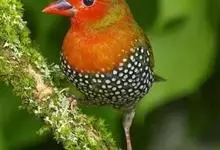红梅花雀小型鸟类,体长9-10厘米。雄鸟通体朱红色,背、肩、胸等满布白色小斑点,两翅和尾黑褐色均具白色端斑,嘴红色,脚蜡黄色。雌鸟上体淡褐色或赭褐色,翅上中覆羽、大覆羽和内侧飞羽末端具白色斑点,…全部>>