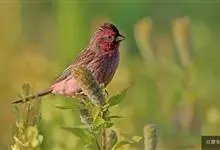 红眉朱雀:体长15厘米,是一种中等体型的朱雀。上体褐色斑驳,眉纹、脸颊、胸及腰淡紫粉,臀近白。雌鸟无粉色,但具明显的皮黄色眉纹。雄雌两性均甚似体型较小的曙红朱雀,但嘴较粗厚且尾的比例较长。…全部>>