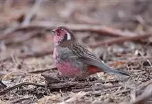 藏朱雀:全长约17-18厘米。雄鸟头部深红色具光辉,喉部暗红色具白色点斑;背部灰白色,各羽具玫瑰红色羽端,形成许多斑纹;腰部淡玫瑰红色;翅暗褐色,沾灰白,羽端沾玫瑰红或灰白色;尾暗棕色,端缘玫瑰红色…全部>>