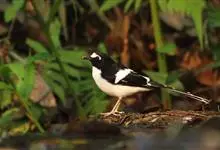 小燕尾鸫科燕尾属的一种鸟类,体长13厘米,尾短,与黑背燕尾色彩相似但尾短而叉浅。其前额白色,翼上白色条带延至下部,且尾开叉,嘴直而壮,嘴须发达;第1枚初级飞羽大约为第2枚初级飞羽长度的一半;尾比翅长,…全部>>