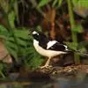 斑背燕尾是鹟科、燕尾属中型鸟类,体长24-25厘米。额至头顶前部白色,其余头、颏、喉、胸黑色,后颈有一白领,背黑色具圆形白色斑点,腰白色,两翅黑色具白色翅斑,尾呈深叉状,黑色、具白色端斑。…全部>>