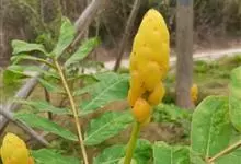 翅荚决明 Roxb.)是豆科决明属灌木植物,高3米。羽状复叶,在叶柄和叶轴上有窄翅;小叶倒卵状长圆形,先端圆钝,基部斜截形;总状花序顶生和腋生;荚果带形,…全部>>