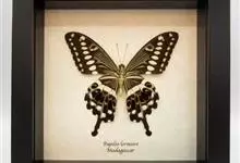 金裳凤蝶是凤蝶科、裳凤蝶属的动物。金裳凤蝶身体呈黑色,头、颈和胸侧有红毛,腹部有黑黄两色相间条纹,雄蝶前翅黑色,具黑天鹅绒光泽,各脉两侧灰白色,后翅金黄色,各室外缘有等腰三角形黑斑1枚,斑内侧有晕,…全部>>