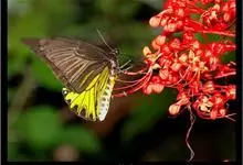 荧光裳凤蝶是凤蝶科裳凤蝶属的一种大型蝴蝶,该物种共有3个亚种。该蝶飞翔的时候姿态优美,前翅黑色,后翅金黄色和黑色交融的斑纹在阳光照射下金光灿灿,显得华贵美丽。幼虫寄主为多种马兜铃属的植物,取食马兜铃…全部>>