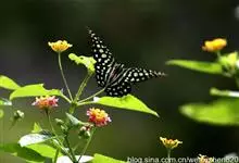 青带凤蝶Graphium sarpedon ,又名青凤蝶,是最普遍的中型凤蝶,飞行速度很快。青带凤蝶的翅膀中央有许多浅蓝色的斑点,很整齐地排列成一条直线。这些斑点由上而下逐渐变大,就像一条青色的带子。全部>>