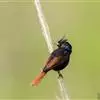 凤头鹀:属小型鸣禽,体重21-31克,体长134-175毫米。以头顶的细长羽冠为特征,雄鸟全身几乎均为黑色具蓝色光泽,两翅和尾以及尾上覆羽栗红色。雌鸟具短的褐色羽冠,上体暗橄榄褐色,…全部>>