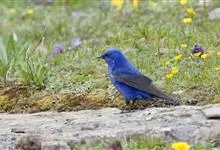 蓝大翅鸲是鹟科、大翅鸲属小型鸟类,体长19-21厘米。两翅尖长。雄鸟通体鲜紫蓝色具金属光泽。两翅和尾黑色。雌鸟上体灰褐色,头、颈、翕具棕白色纵纹,翅上有白色翅斑。虹膜暗褐色,嘴、脚黑色。…全部>>