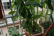 瓜栗 Walp. ),俗称发财树,木棉科小乔木,高4-5米,树冠较松散,幼枝栗褐色,无毛。小叶具短柄或近无柄。花单生枝顶叶腋;花梗粗壮,被黄色星状茸毛,脱落;萼杯状,近革质;花瓣淡黄绿色,狭披针形…全部>>