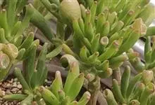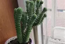 筒叶花月,是景天科青锁龙属的多年生草本植物。植株多分株,灌木状,茎较粗壮,圆柱形,表皮灰褐色;叶片肉质,互生,呈圆筒状,簇生于茎或分枝顶端,叶端呈斜截形,截面为椭圆形;花呈星状,淡白色;花期秋季。…全部>>