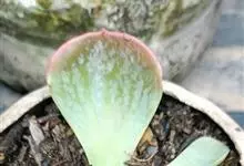 唐印为景天科伽蓝菜属的多年生肉质草本植物。植株中型,株高50厘米,宽20厘米,多分枝;叶片肉质,对生,卵形,全缘,先端钝圆,叶片淡绿色至灰绿色,表面被有厚厚的白粉,光照充足时,叶缘呈红色;圆锥花序,…全部>>