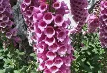 毛地黄是车前科、毛地黄属一年生或多年生草本植物。株高0.5—1米,茎直立,少分枝,全株被灰白色短柔毛和腺毛叶基生,呈莲座状,卵圆形或卵状披针形。顶生总状花序,花冠钟状,紫红色,内面有浅白斑点。菊果卵形。…全部>>