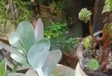 唐印为景天科伽蓝菜属的多年生肉质草本植物。植株中型,株高50厘米,宽20厘米,多分枝;叶片肉质,对生,卵形,全缘,先端钝圆,叶片淡绿色至灰绿色,表面被有厚厚的白粉,光照充足时,叶缘呈红色;圆锥花序,…全部>>