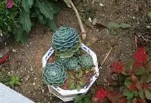 玉蝶 E.Morren)是景天科石莲花属多年生肉质草本植物,植株高可达60厘米。叶片互生,肉质,倒卵匙形,叶稍直立,先端圆且有小尖,微微向内弯曲,叶片淡绿色;单歧聚伞花序腋生,小花为钟形,赭红色,…全部>>