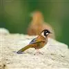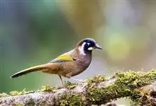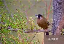 黑顶噪鹛:中型鸟类,体长24-26厘米。前额、脸、颏、喉黑色,头顶黑褐沾棕或深棕橄榄褐色,背栗褐或棕褐色,颧斑白色或棕红色,眼后缘和颈侧亦具白斑,飞羽金黄橄榄色而具蓝灰色尖端。下体淡棕褐色。…全部>>