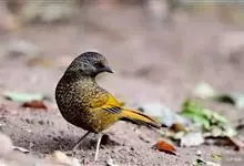 蓝翅噪鹛:噪鹛科、彩翼噪鹛属动物。中型鸟类,体长22-25厘米。上体棕橄榄褐色密被黑色鳞状斑,眼蓝白色,眼上有一长而宽阔的黑色眉纹,从眼先直到颈侧。下体棕褐色被黑色鳞状斑;尾上和尾上覆羽栗色,…全部>>