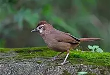 白颊噪鹛是雀形目噪鹛科噪鹛属鸟类,又称土画眉、小画眉、小噪鹃。成鸟额至头顶栗褐色,长眉纹、眼先和颊纹棕白色,眼后至耳羽深褐色,…全部>>