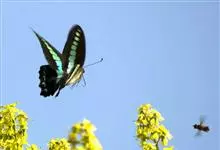 玉带凤蝶是鳞翅目凤蝶科凤蝶属昆虫,又称白带凤蝶、黑凤蝶、缟凤蝶、梁山伯凤蝶。雄蝶前翅外缘、后翅中央有7个大型黄白斑,排列成带。老熟幼虫深绿色,头部黄褐色,后胸前缘有1条齿状的黑色线状横纹,…全部>>