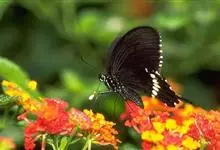 玉斑凤蝶Papilio helenus 别名白纹凤蝶,是凤蝶科凤蝶属美凤蝶亚属大型种类。雌雄同型;体翅皆黑色,后翅正面中室外有3个并列的白色斑,亚外缘有1列模糊的新月形红色斑,…全部>>