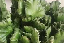 麒麟掌,是大戟科大戟属多年生植物。为金刚纂的带化变异变种。麒麟掌的株乳汁丰富;它的茎圆柱状,上部多分枝,绿色;叶互生,稀少,常生于嫩枝顶端脊上,倒卵形、倒卵状长圆形或匙形,顶端钝圆,具小凸尖,全缘,…全部>>