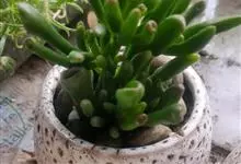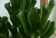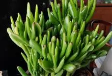 筒叶花月,是景天科青锁龙属的多年生草本植物。植株多分株,灌木状,茎较粗壮,圆柱形,表皮灰褐色;叶片肉质,互生,呈圆筒状,簇生于茎或分枝顶端,叶端呈斜截形,截面为椭圆形;花呈星状,淡白色;花期秋季。…全部>>
