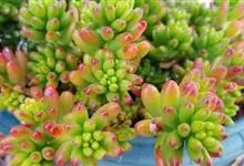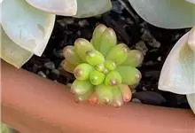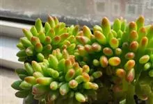 玉米石是景天科、景天属植物。多年生草本多浆植物。植株低矮丛生,多分枝。叶膨大成圆筒形、卵形或近小球形,互生至簇生,长0.6-1.2厘米,宽0.4-0.7厘米,叶端钝圆,亮绿色,肉质,硝带红晕,…全部>>