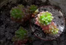 虹之玉是景天科景天属的多肉植物,多年生肉质草本植物。生长速度较快,叶片肉质,呈长椭圆形,约1厘米长,互生。花黄色,星形,秋冬季节或强光照下,叶片部分或全部转为鲜红色。生长适温10~28℃,…全部>>