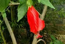 垂花悬铃花是锦葵科、悬铃花属常绿小灌木,外型略似朱槿,但叶片较为狭长浓绿;高30-60厘米,叶片互生,卵形或卵状矩圆形,单叶,有时浅裂,叶形变化较多,叶面具星状毛。花红色,花通常单生于上部叶腋处,下垂,…全部>>