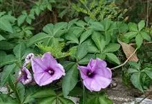 五爪金龙 Sweet),旋花科番薯属多年生缠绕草本植物。茎细长,有细棱;叶片为掌状;花冠紫红色、紫色或淡红色、偶有白色,漏斗状;蒴果近球形。花期5~12月。五爪金龙的叶子类似掌状,有5至7个裂痕,…全部>>