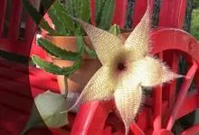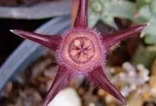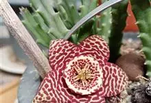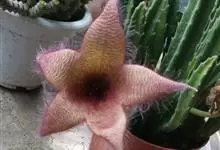 巨花犀角又称大豹皮花,是夹竹桃科犀角属的一种植物。茎粗,花大,边缘生长细毛。植株柱形多分枝呈丛生,柱形具4棱,棱缘具细小疣突。花大,五角星形黄色,并有横向棕褐色斑纹,似豹皮而得名。花期夏秋两季。…全部>>