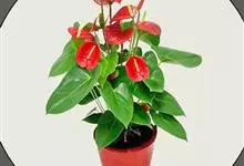 花烛,别名红鹅掌、红掌、安祖花等,为天南星科花烛属的一种多年生草本植物。其茎矮;叶互生,叶片革质,有光泽,阔心形、圆心形,先端钝或渐尖,基部深心形;肉穗花序有细长花序梗,佛焰苞深红色或橘红色,…全部>>