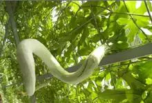 蛇瓜是葫芦科栝楼属的一年生攀援藤本植物。别名蛇豆。茎被柔毛及疏长柔毛状硬毛;叶圆形或肾状圆形,先端圆钝或宽三角形,叶基弯缺深心形;花雌雄同株,苞片钻状披针形,萼筒密被毛,裂片呈窄三角形,花冠白色,…全部>>