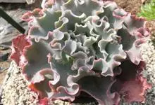 女王花笠,又名扇贝石莲花、女王花舞笠,是景天科拟石莲花属的多肉植物。由美国加利福尼亚州的育种师Dick Wright于1964年培育。特征是呈大波浪状褶皱的红色叶缘和气质高贵的粉紫色调。…全部>>
