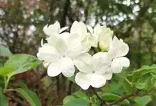 琼花是荚蒾科荚蒾属落叶或半常绿灌木植物,又名扬州琼花、蝴蝶木、八仙花、聚八仙、蝴蝶戏珠花、毛琼花。琼花高达4米;树皮灰褐色或灰白色。叶纸质,卵形至椭圆形或卵状矩圆形。聚伞花序,花冠白色,辐状。…全部>>