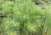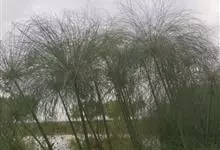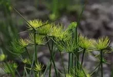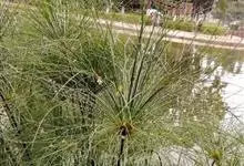 纸莎草是莎草科、莎草属的植物,具有粗壮的根状茎,高达2-3米,茎秆簇生,粗壮,直立,钝三棱形。叶退化呈鞘状,茎秆顶端着生总苞片,呈伞状簇生,总苞片叶状,披针形,顶生花序伞梗极多,细长下垂。瘦果灰褐色,…全部>>