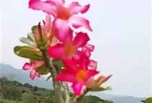 沙漠玫瑰 Roem. & Schult.),别名天宝花、阿拉伯沙漠玫瑰、索马里沙漠玫瑰等,为夹竹桃科沙漠玫瑰属的一种多肉灌木或小乔木植物。其树干肿胀,茎干光滑,白绿色或灰白色,…全部>>