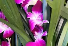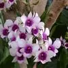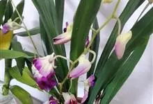 玫瑰石斛是兰科石斛属的多年生附生草本植物。茎斜下或下垂,青绿色,圆柱形,节间鞘具绿或白色相间的条纹;叶窄披针形;花序短,生于已落叶的老茎上部,花序梗长,萼片和花瓣白色,上部带淡紫色,干后蜡质状,…全部>>