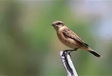 黑喉石鵖,雀形目鹟科石鵖属小型鸣禽,俗名谷尾鸟、黑喉石。其体色为黑褐色。雄鸟头部、背部、两翼及尾黑色,颈侧及翼上具白斑,胸部和腹侧红棕色,腰及尾下覆羽白色。雌鸟体色为褐色,上体具深色纵纹,胸部染棕色,…全部>>
