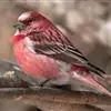 藏朱雀:全长约17-18厘米。雄鸟头部深红色具光辉,喉部暗红色具白色点斑;背部灰白色,各羽具玫瑰红色羽端,形成许多斑纹;腰部淡玫瑰红色;翅暗褐色,沾灰白,羽端沾玫瑰红或灰白色;尾暗棕色,端缘玫瑰红色…全部>>
