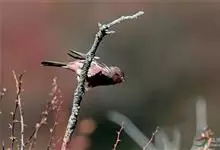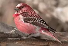 红腰朱雀:体长12-14厘米,小型鸟类。雄鸟前额和眉纹玫瑰粉红色,头顶和一宽的贯眼带深红褐色,背红棕褐色具暗褐色纵纹,腰玫瑰粉红色,两翅和尾暗褐色,羽缘色淡颊、头侧、颏、喉和其余下体玫瑰粉红色。雌鸟…全部>>