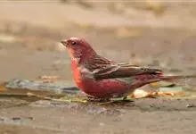 酒红朱雀小型鸟类,体长13~15厘米。雄鸟通体深红色,头部深朱红或棕红色,下背和腰玫瑰红色,眉纹粉红色而具丝绢光泽。两翅和尾黑褐或灰褐色、具暗红色狭缘,内侧两枚三级飞羽具淡粉红色先端。…全部>>