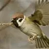 家麻雀:共有13个亚种。是小型鸟类,体长14-16厘米。背栗红色具黑色纵纹,两侧具皮黄色纵纹;颏、喉和上胸黑色,脸颊白色,其余下体白色,翅上具白色带斑。雄鸟与树麻雀的区别在顶冠及尾上覆羽灰色,耳无黑…全部>>