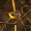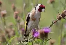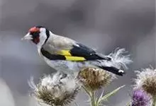 红额金翅雀:共有14个亚种。小型鸟类,体长12-14厘米。额、脸颊和颏朱红色,眼先和眼周黑色,在淡色的头部极为醒目。上体灰褐或乌褐色,尾上覆羽白色,两翅和尾黑色,翅上有黄色斑。下体喉、胸灰褐或乌褐色…全部>>