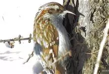 旋木雀是旋木雀科旋木雀属的一种动物。小型鸟类,体长12~15厘米,平均重10克。嘴长而下曲,上体棕褐色具白色纵纹,腰和尾上覆羽红棕色,尾黑褐色,外翈羽缘淡棕色,翅黑褐色,翅上覆羽羽端棕白色,…全部>>
