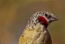 红梅花雀小型鸟类,体长9-10厘米。雄鸟通体朱红色,背、肩、胸等满布白色小斑点,两翅和尾黑褐色均具白色端斑,嘴红色,脚蜡黄色。雌鸟上体淡褐色或赭褐色,翅上中覆羽、大覆羽和内侧飞羽末端具白色斑点,…全部>>